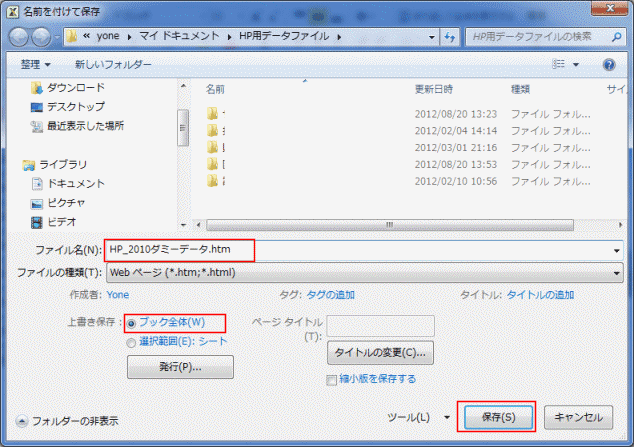 HP_2010ダミーデータ.files というフォルダーとHP_2010ダミーデータ.htm というファイルが作成されているのが確認できます。