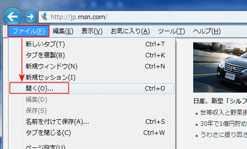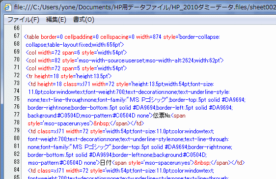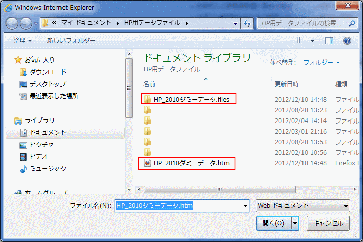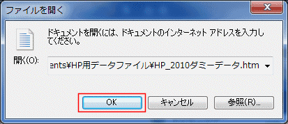 ここでは、HP_2010ダミーデータ.htm というファイルを選択して[開く]を実行します。