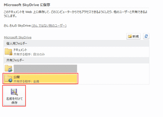 Web(SkyDrive/OneDrive)に保存する
