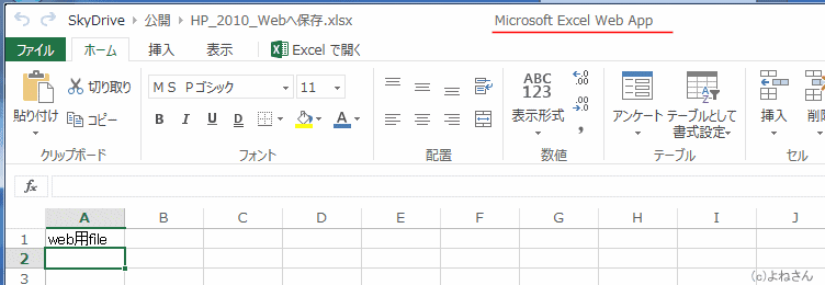 - Microsoft Excel Web App で保存したファイルが開かれました。