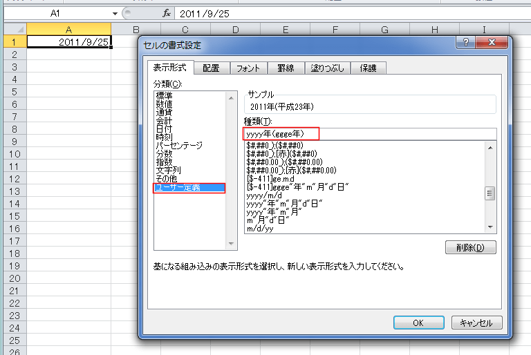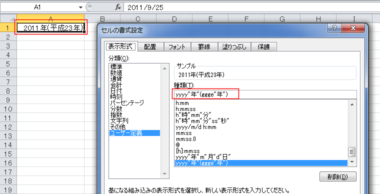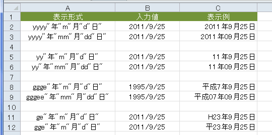 | e | 1994/7/8 | ggge | 平成6 | 元号の年が1桁表示になります。 |