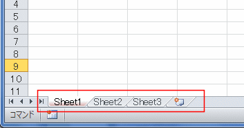 | シート見出しが表示されている状態 |