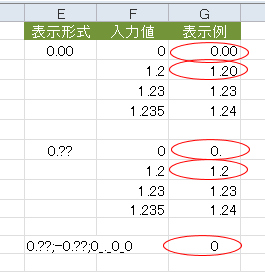 | ? | 数値の小数点を揃えるために、整数部と小数部の余分なゼロがスペースで表示されます。 桁数の異なる複数の小数を揃えて表示する場合に使います。 |