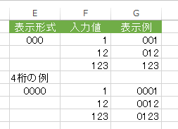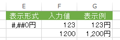 | 書式 | 入力値 | 設定例 | 表示例 | 説 明 |