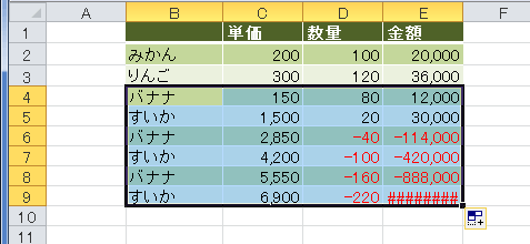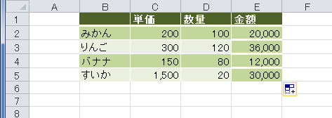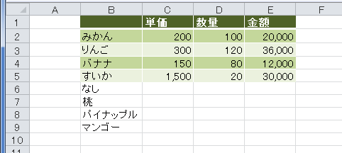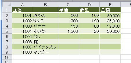 書式に関するオプションですので、書式を設定したデータリストを使って説明します。