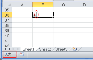 - 未入力セルにキーボードから入力すると、セルにカーソルが表示されて、入力モードになります。