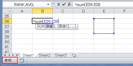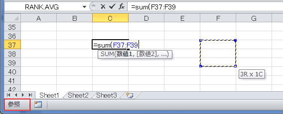 - 編集モードで、マウスを使ってセル範囲を選択すると、参照モードとなります。