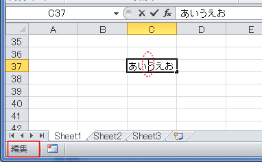 - 編集モードのときは、カーソルキーを押すと、セル内でのカーソル位置が変わるだけです。