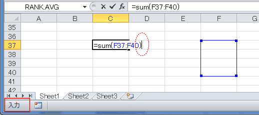 - 関数の引数の後ろかっこを入力すると、入力モードに戻ります。