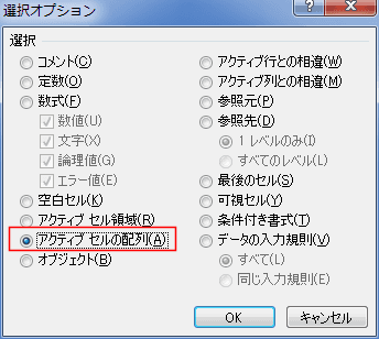 アクティブセルの配列を選択する