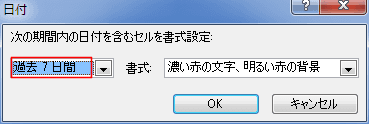 2013/6/16を含めて過去7日間のセルの書式が変わりました。(5日後には下図のようになるということです。)