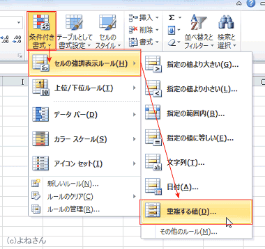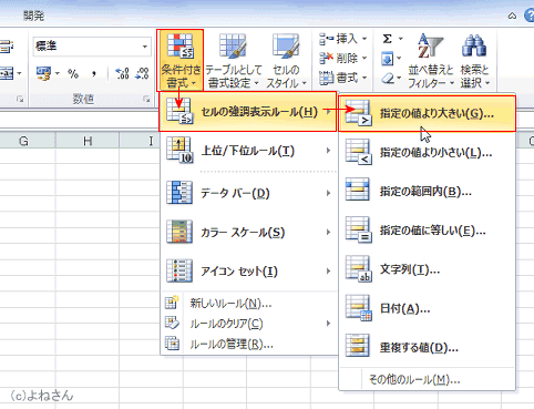よねさんのExcelとWordの使い方|エクセル2010基本講座:目次|条件付き書式|セルの強調表示ルール(条件付き書式)