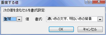 - [ホーム]タブの[スタイル]グループで[条件付き書式]→[セルの強調表示ルール]→[重複する値]を実行します。