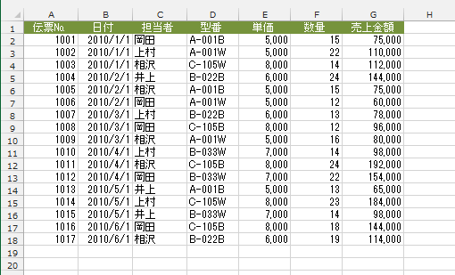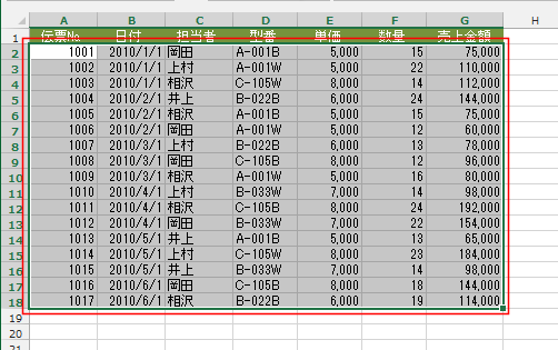 なお、ここの例ではデータが入力された状態ですが、未入力の範囲を指定してもかまいません。