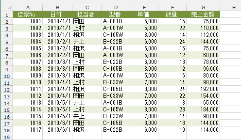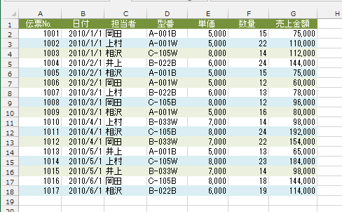 - 奇数行と偶数行が異なる色で塗りつぶされました。