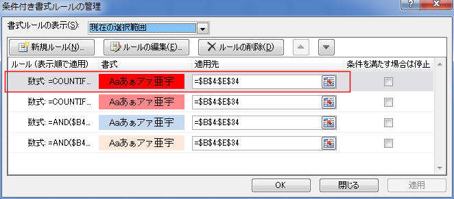 - 設定した条件付き書式のルールが一番上に表示されました。