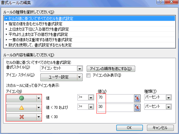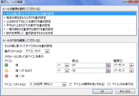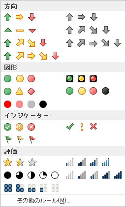 - Excel2010ではExcel2007よりもアイコンセットの種類が増えています。
