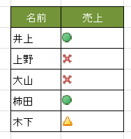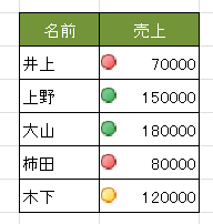 - [ホーム]タブの[スタイル]グループにある[条件付き書式]→[アイコンセット]→図形 を実行しました。