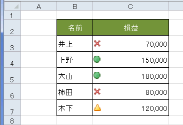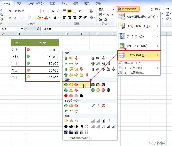 よねさんのExcelとWordの使い方|エクセル2010基本講座:目次|条件付き書式|アイコンセット(条件付き書式)