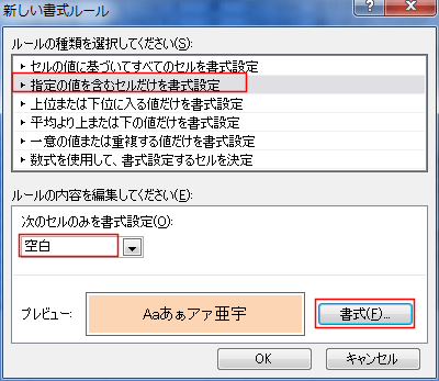 - 設定例(データの入力されていない空白(空欄)のセルを強調する)