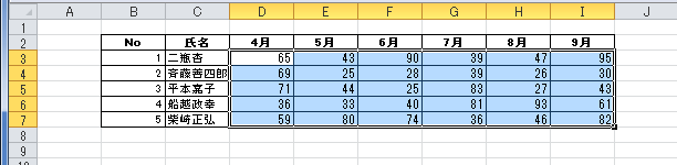 - 数式の例:数式は選択範囲内のアクティブセルを対象としたものを作成します。