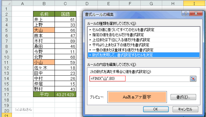 よねさんのExcelとWordの使い方|エクセル2010基本講座:目次|条件付き書式|新しいルール(条件付き書式)