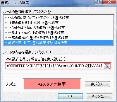 - 日曜日と祝日を同じ書式にしたい・・・・というときは?