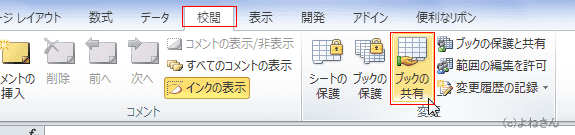 よねさんのExcelとWordの使い方|エクセル2010基本講座:目次|ブックの操作とブックの共有|ブックの共有