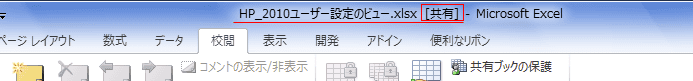 - タイトルバーのファイル名の後ろに[共有]と表示されるようになります。