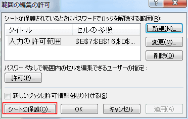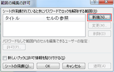 - [範囲の編集の許可]ダイアログボックスで[新規]ボタンをクリックします。