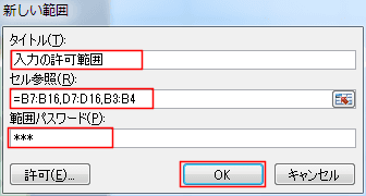- タイトル、セル参照、範囲パスワードを入力して[OK]ボタンをクリックします。