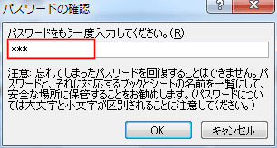 - パスワードを入力した場合、パスワードの確認画面が表示されますので再度同じパスワードを入力して[OK]ボタンをクリックします。