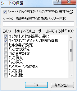 - シートの保護で許可する操作を設定します。