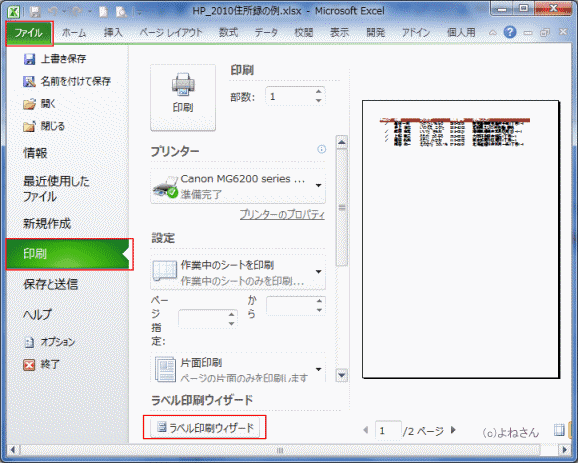よねさんのExcelとWordの使い方|エクセル2010基本講座:目次|テンプレート・アドインなど|ラベル印刷ウィザードを使う