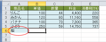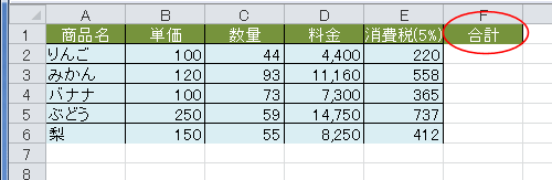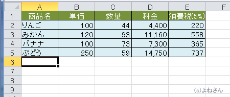さらに、D6,E6には書式とともに上のセルと同様の数式も入力されました。