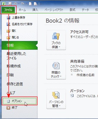 - [ファイル]→[オプション]を実行します。