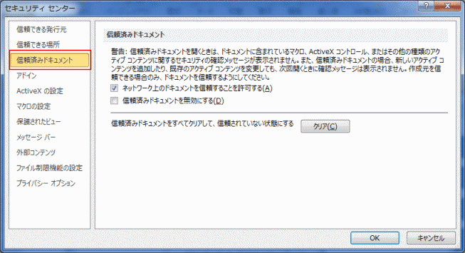 - 信頼済みに設定されたものを変更する方法は 信頼済みドキュメントの設定を変える をご覧ください。