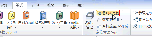 [数式]タブの[定義された名前]グループの[名前の定義]を実行します。