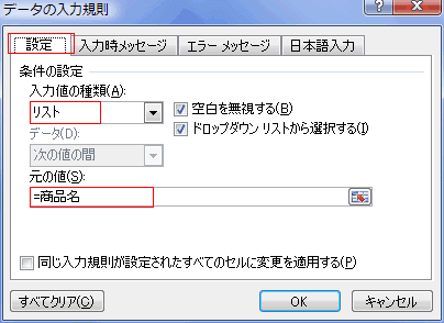 入力規則の使い方(ドロップダウンリスト)
