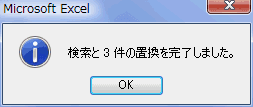 - [すべて置換]を実行すると、下図のようなメッセージが表示されます。