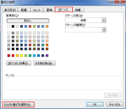 [塗りつぶし]タブを選択して、[セルから書式を選択]ボタンをクリックします。