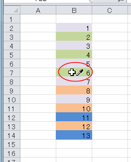 置き換えたい色のセルをクリックします。