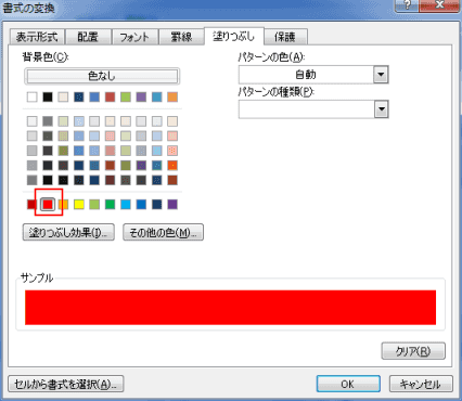 下図では「赤」をクリックして、指定しました。[OK]ボタンをクリックします。