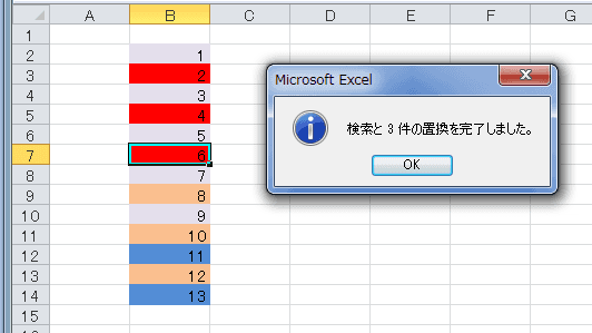 - セルの塗りつぶしの色が置換されました。