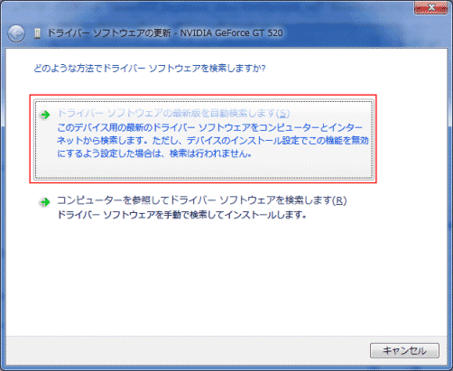 「ドライバー ソフトウェアの最新版を自動更新します」をクリックします。