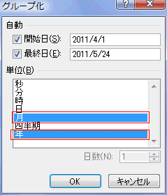 - 単位で、「月」と「年」を選択し[OK]ボタンをクリックします。