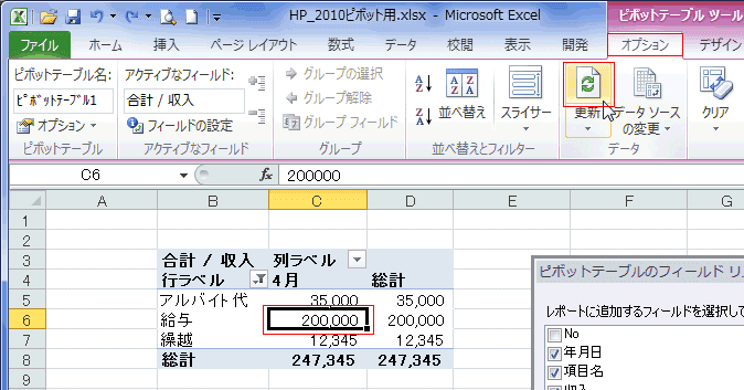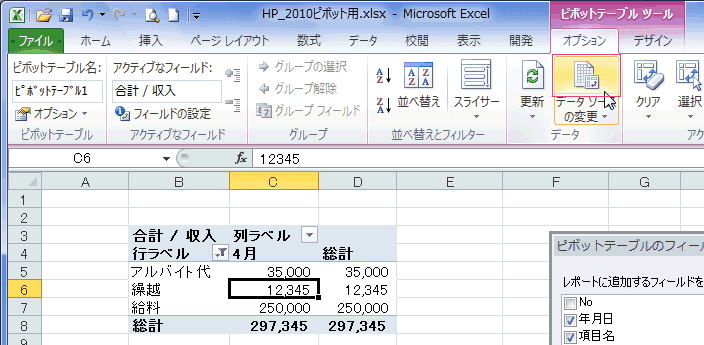 よねさんのExcelとWordの使い方|エクセル2010基本講座:目次|ピボットテーブルとピボットグラフ|ピボットテーブルの更新・データ ソースの変更