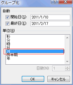 単位で「月」を選択して[OK]ボタンをクリックします。