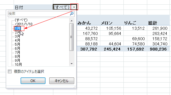 よねさんのExcelとWordの使い方|エクセル2010基本講座:目次|ピボットテーブルとピボットグラフ|ピボットテーブルのレポートフィルターの使い方
