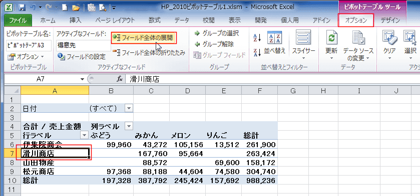 [アクティブなフィールド]グループの[フィールド全体の展開]を実行します。